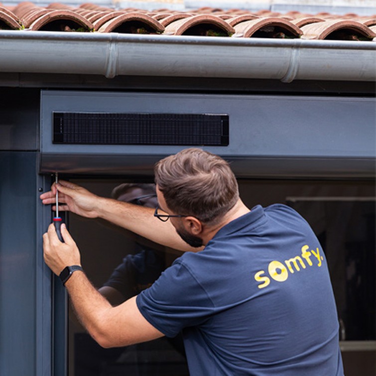 Somfy ist aus gutem Grund Marktführer für Rollladenantriebe im Allgemeinen. Und auch Solarpanel sowie Akku unterliegen unseren höchsten Ansprüchen an Technologie und Qualitätssicherung. Mit unserem RS100 Solar io können Sie jeden motorisierten Rollladen ausstatten, weshalb sich dieser nicht nur bei neuer Installation, sondern auch zum Nachrüsten bestens eignet. Über unser weites Netzwerk an qualifizierten Somfy-Fachpartnern erhalten Sie Top-Beratung und eine einwandfreie Installation Ihrer neuen Solar-Rollladen.