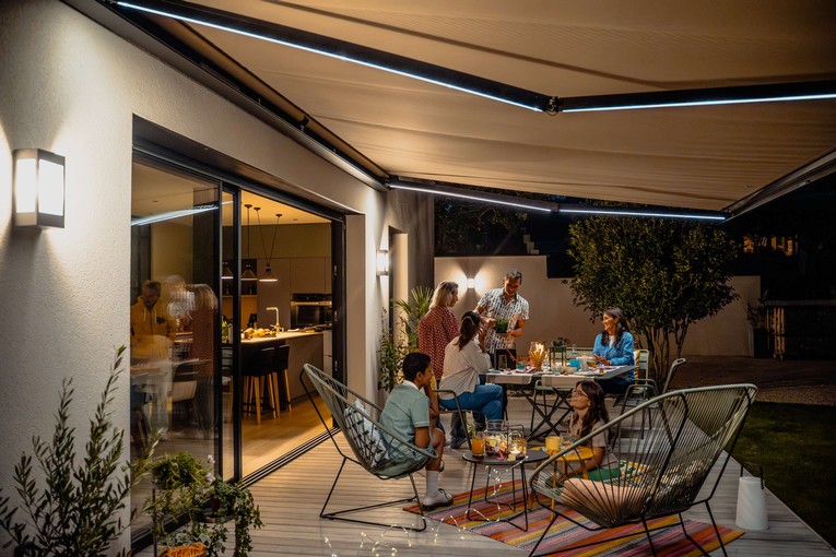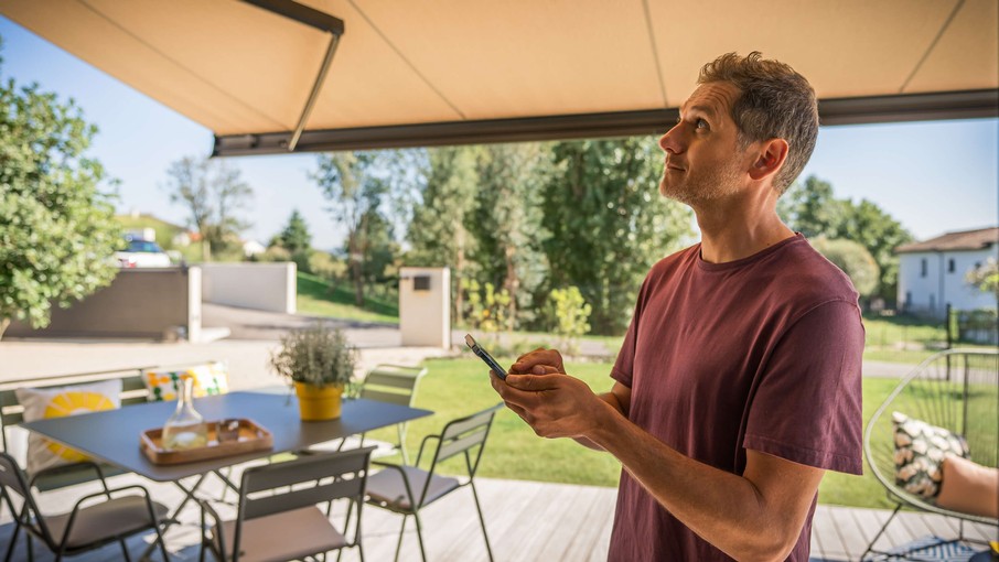 Eine elektrische Markise mit Windsensor kann auch in Ihr Smart Home-System eingebunden werden. Unser Smart-Home-System TaHoma bietet Ihnen hierfür alle Möglichkeiten. Hier funktioniert auch die Fernsteuerung per Smartphone bzw. per Sprachbefehl, sofern Sie einen Sprachassistenten wie Amazon Alexa oder Google Home nutzen möchten. Darüber lassen sich Szenarien programmieren und nicht nur die Markise, sondern auch Rolladen, Screens oder Außenjalousien wetterabhängig ansteuern.